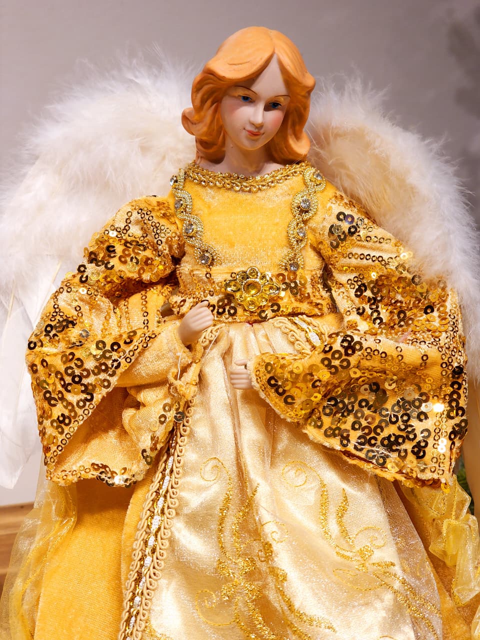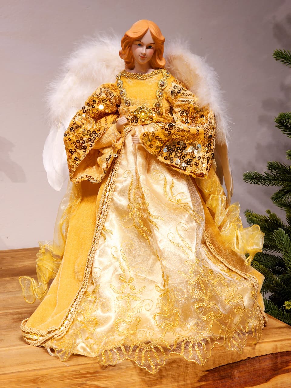 ANJA SOFIE COM VESTIDO DE TECIDO DOURADO CM